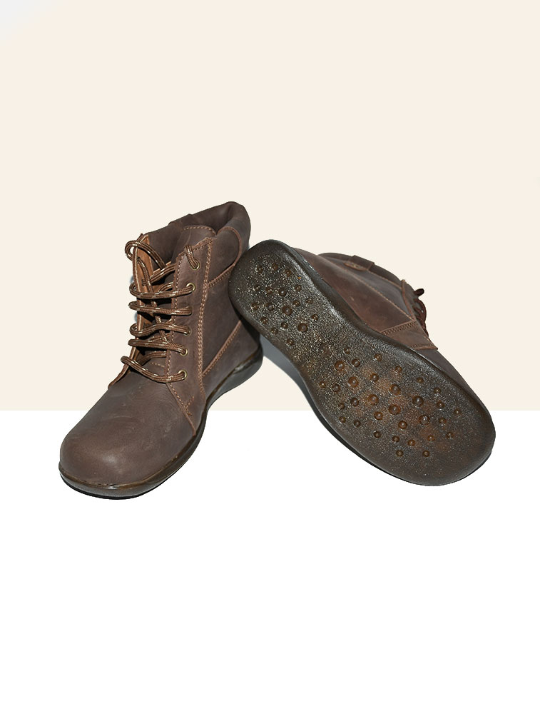 Calzado forro de cuero, interior de badana de vacuno acolchado según patología hechos 100% a mano tiempo de confección 15 días hábiles con una o dos toma de prueba hasta quedar bien el calzado entrega en 3 días hábiles la terminación de cada calzados se hace según la patología de cada cliente puede ser planta de goma, suela, suela liviana con balancín etc.